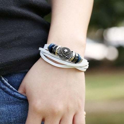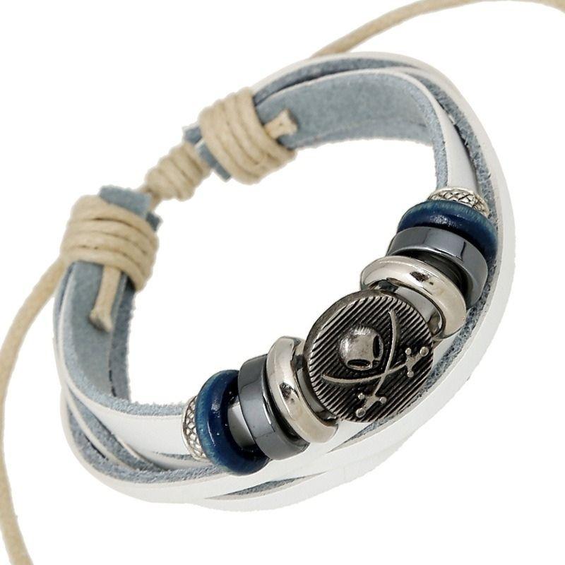 Lust auf Originalität, junger Matrose? Schau dir dieses schöne weiße Leder Piraten armband an, ein schönes Piratenjuwel in weißer Lederfarbe, das dank seines recht verfeinerten Stils sogar täglich getragen werden kann. Angenehm am Handgelenk zu tragen und sehr robust.