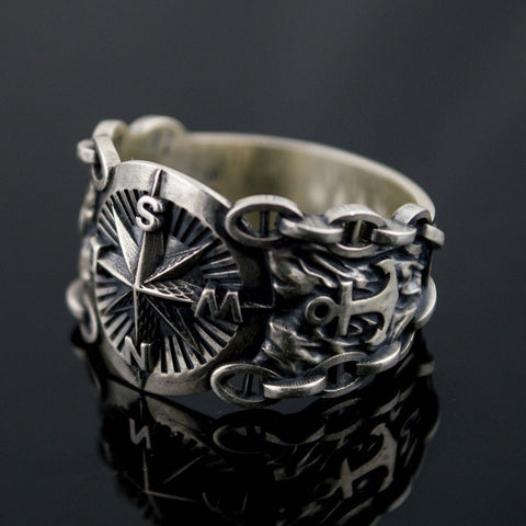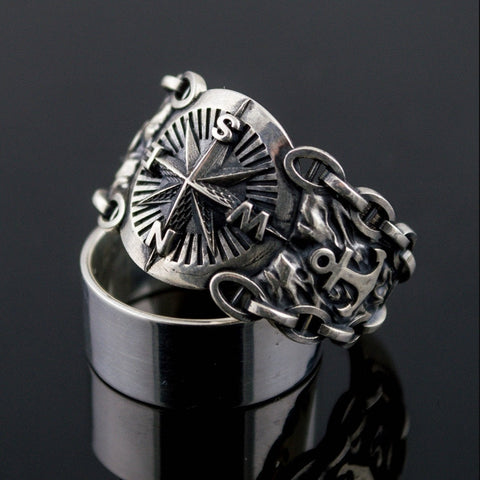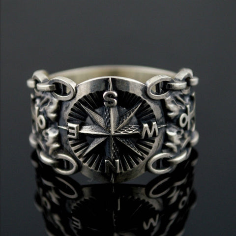 Verliere nie den Norden mit deinem Marine Kompass ring! Der Kompass war das wichtigste Werkzeug für Piraten, um auf See bis zum Schatz zu navigieren. Setze mit diesem Piratenring stilvoll Kurs wie ein erfahrener Korsar.