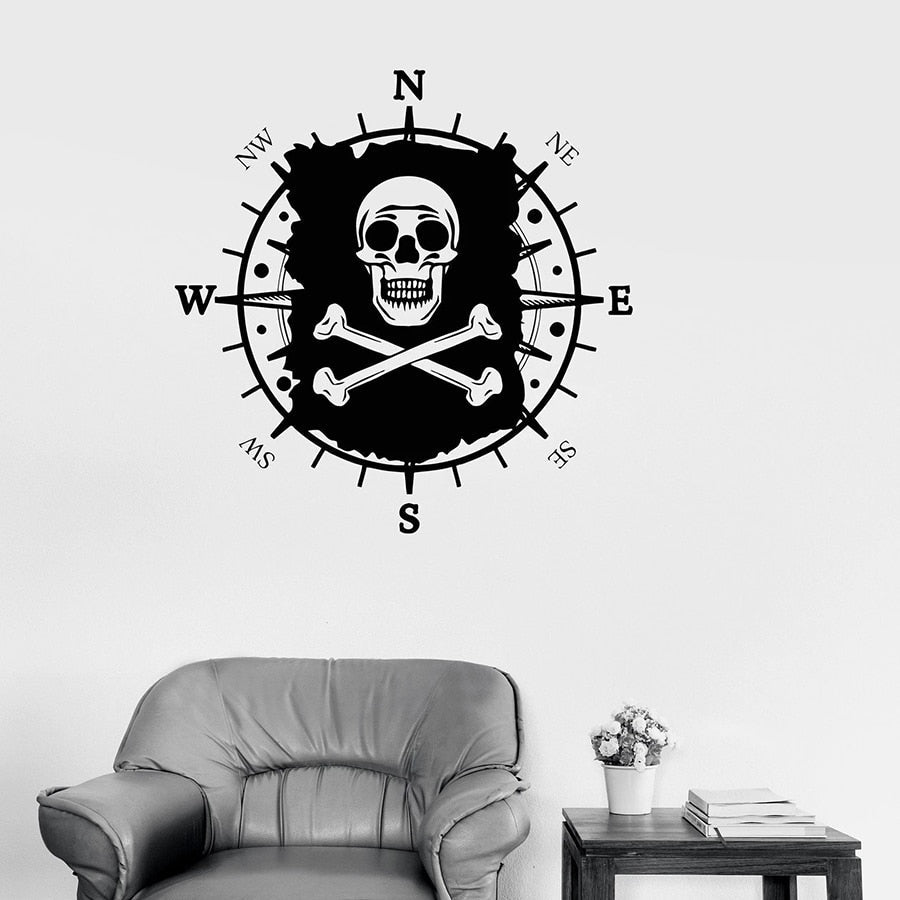 Klebe diesen Piraten Sticker an deine Wand, und genau wie Jack wirst du wissen, wo du die am besten versteckten Schätze finden kannst. Er stellt einen Totenkopf auf zwei Schienbeinen dar und zeigt die Himmelsrichtungen an. Es ist das unverzichtbare Accessoire für jeden respektablen Freibeuter!