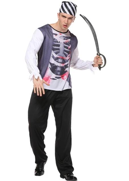 Mit einer schmutzigschwarzen Hose, einem Seemannshut mit schwarz-weißen Streifen und einem Piratensäbel sieht dieses Outfit aus, als käme es direkt aus einem Horrorfilm. Also, wenn du blutige Untoten-Filme liebst oder einfach nur gerne Angst einjagst, ist dieses Kostüm genau das Richtige für dich. Mit dem passenden Zombie-Make-up wird dein Horrorabend mehr als gelungen sein.